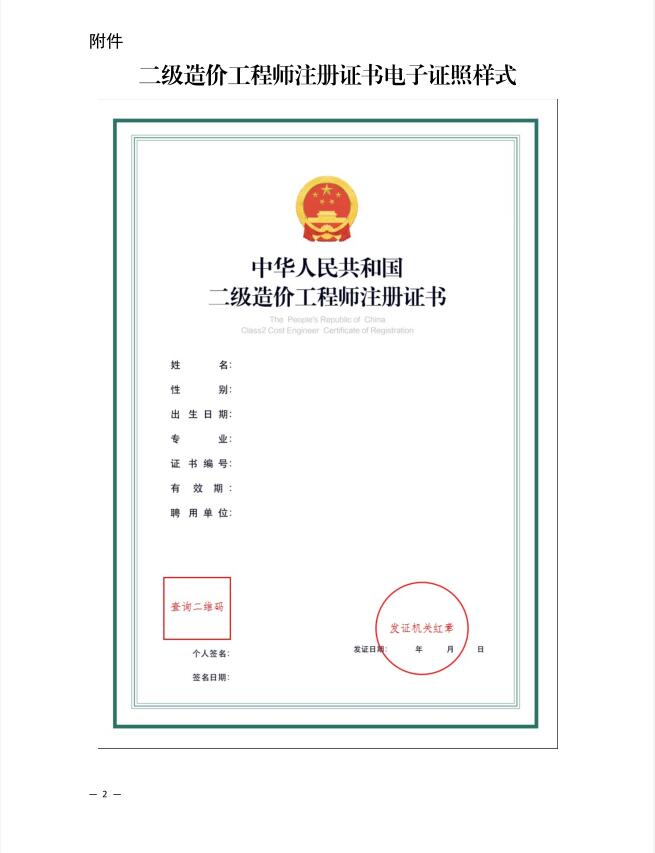 省建设厅关于启用二级造价工程师注册证书新电子证照样式的通知
